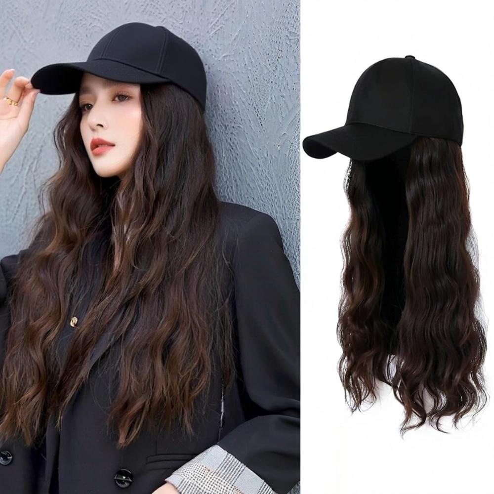 帽子付きウィッグ 女性用ウィッグ ファッション新作 自然なキャップ一体型ウィッグ ウェーブロングヘア 即納 多用途