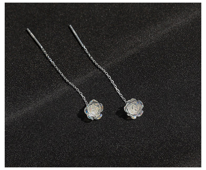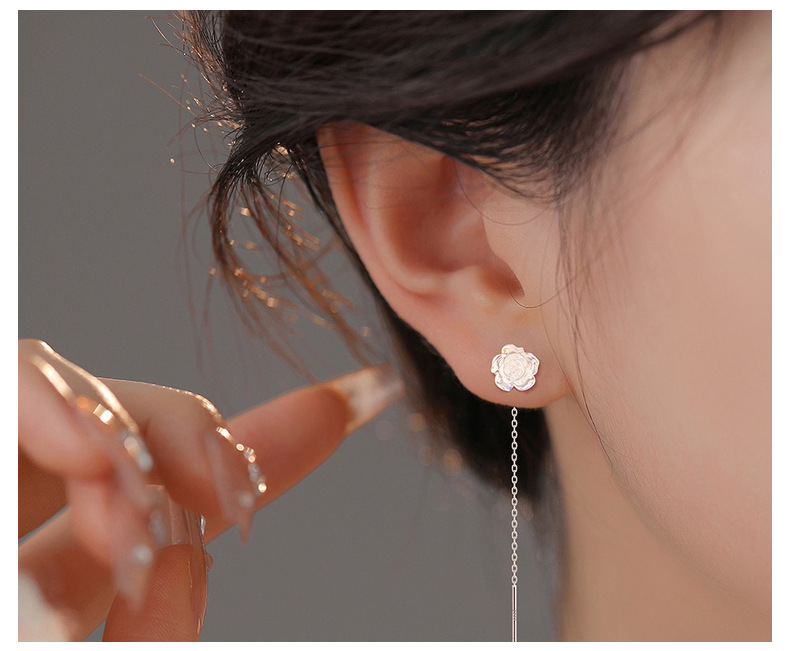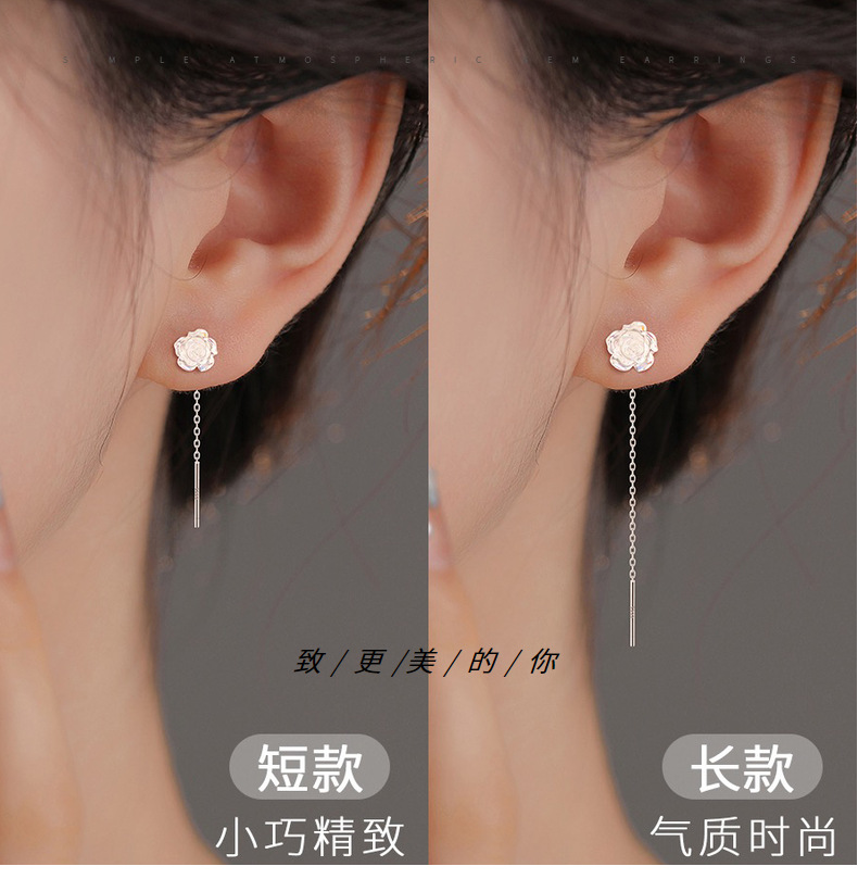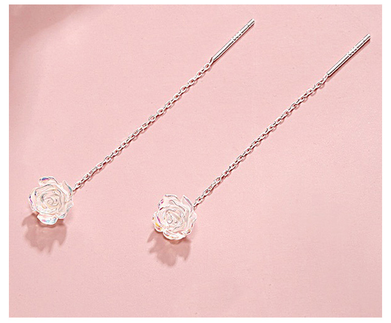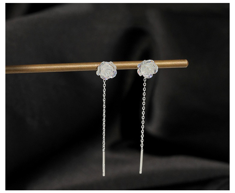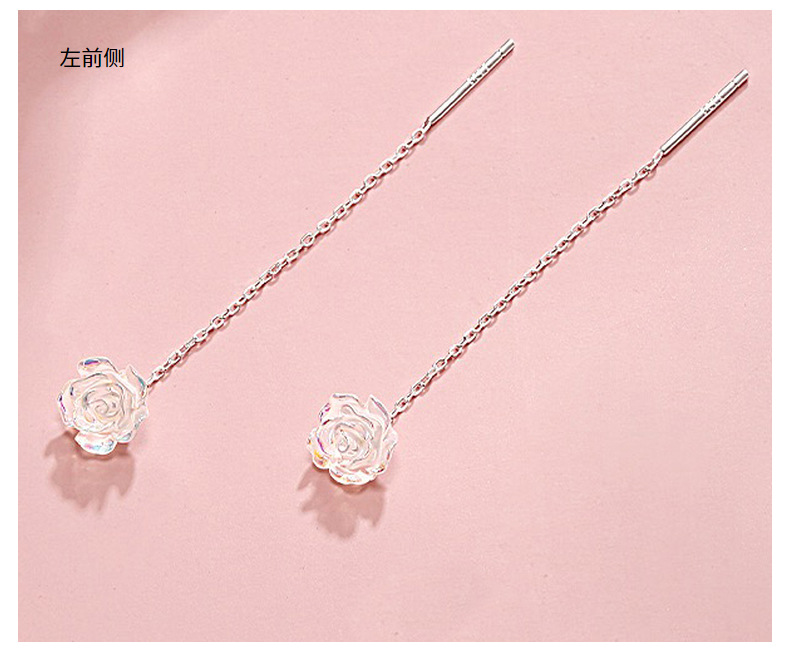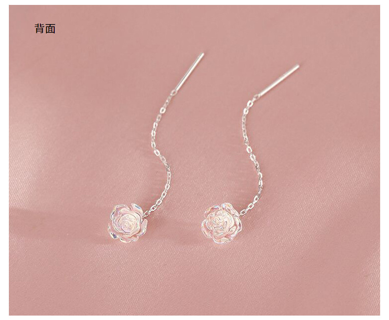 S999純銀幻彩ローズフラワーイヤリング、女性用軽奢アートエレガントイヤリング、スイートタッセルイヤリング、ワンピース卸売