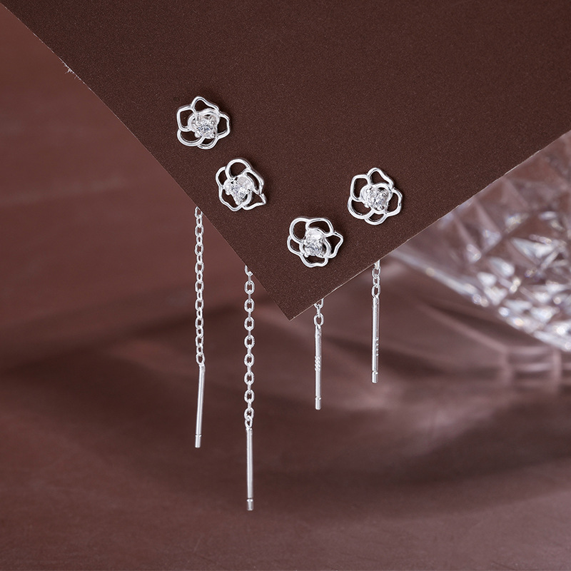 小さくて上品な999純銀椿の花イヤリング、個性的な2025年新作人気レディースピアス、高級感のあるイヤリング