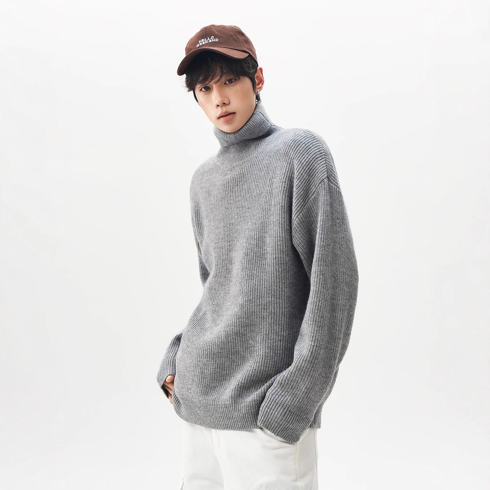 简恒基础简约纯色设计感高领毛衣宽松休闲长袖打底套头针织衫男士