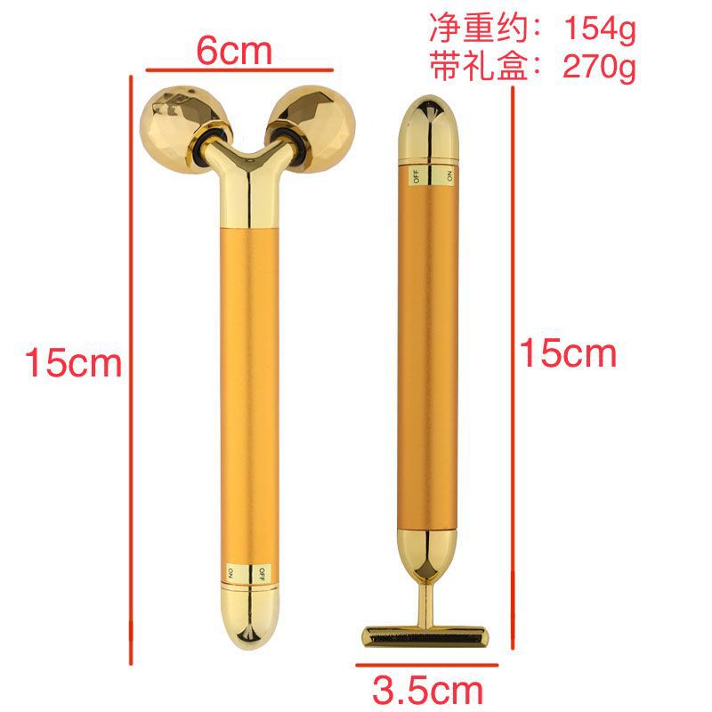ローラーマッサージ黄金棒美容棒t型顔痩せ顔器3dローラーマッサージ器電動24k黄金棒