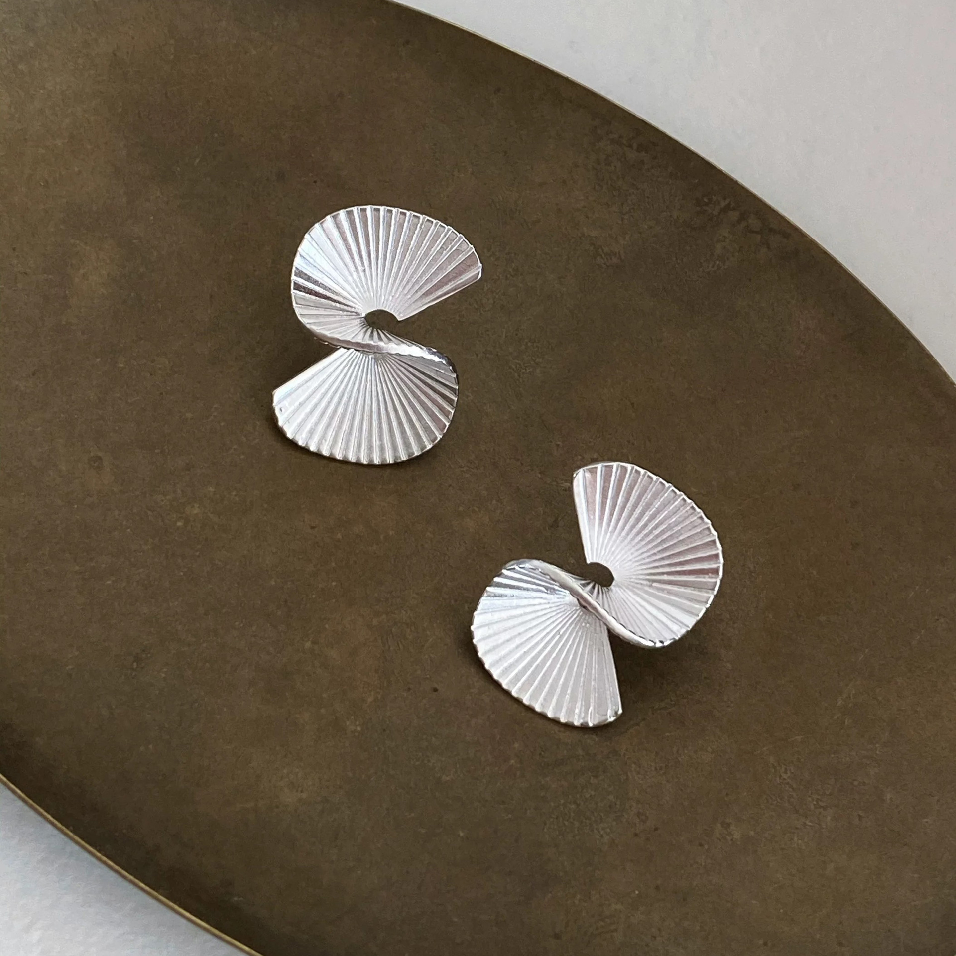 s925純銀折り紙扇子型イヤリング、女性用、軽やかな高級感、個性的な不規則デザイン、多用途で上品、ファッショナブルな幾何学模様のシルバーアクセサリー。