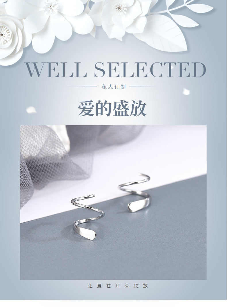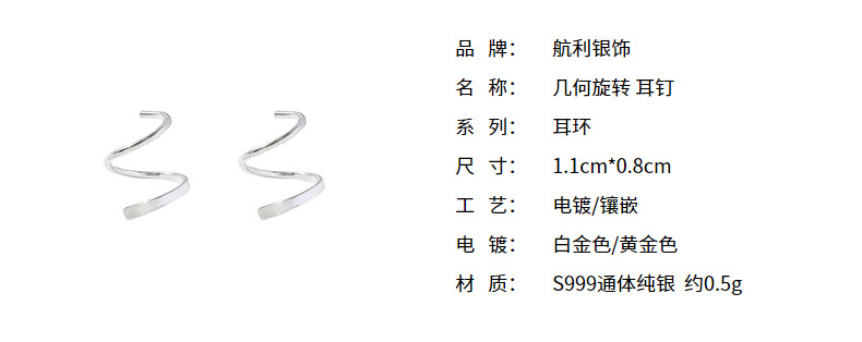 999純銀回転式イヤリング、軽やかな高級感、シンプルなスパイラルイヤリング、個性的で多用途、ファッショナブルな二層式イヤリング、工場直販