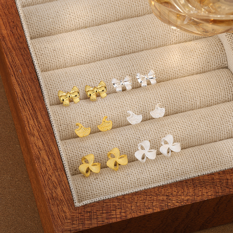 999 アプリコットリーフスターリングシルバーイヤリング女性用、ライトラグジュアリーニッチシンプルリボンイヤリング、クローバー耳ピアス、小さなイヤリング