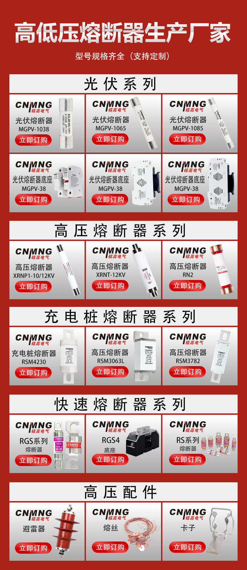 RN1/RN3/RN2-35/0.5A 屋内高圧限流ヒューズ RXWO/RW10/RW9-40.5KV