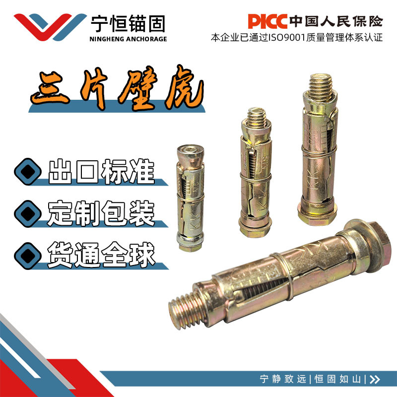 宁恒制造 万能膨胀螺丝重型三片壁虎三片式式膨胀螺丝空心砖专用