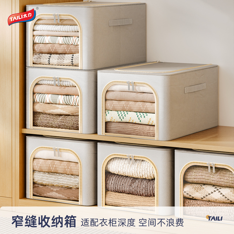太力衣物收纳箱PP底板布艺百纳箱窄款家用被子衣服整理折叠储物箱