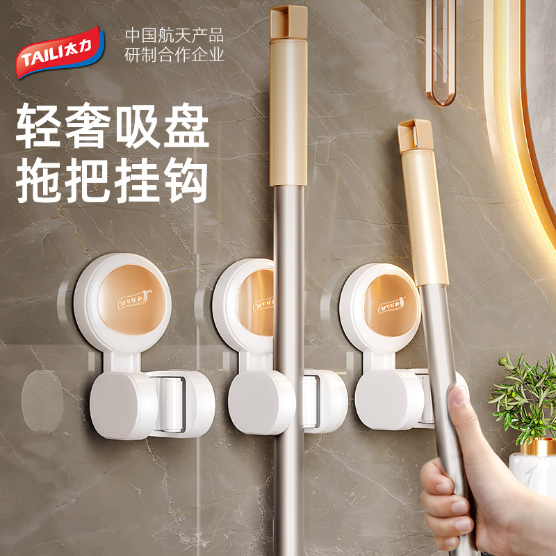 太力掛けモップフック穴なし収納棚トイレ収納吸盤強力バックル壁掛けモップクリップ神器