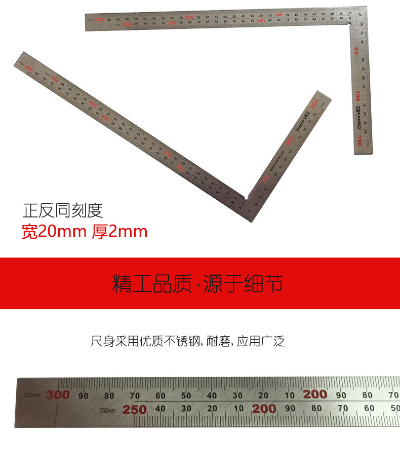 ケープカポロステンレス鋼の直角定規90度木工角定規300/500変曲定規厚い角定規