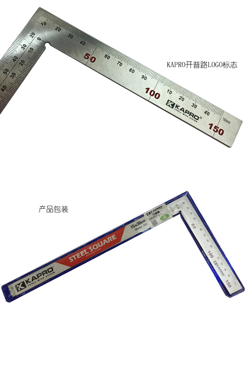 イスラエルのkaproステンレス鋼の直角定規45度90度の大工定規は鋼定規のスクライブ角度定規を表示します。