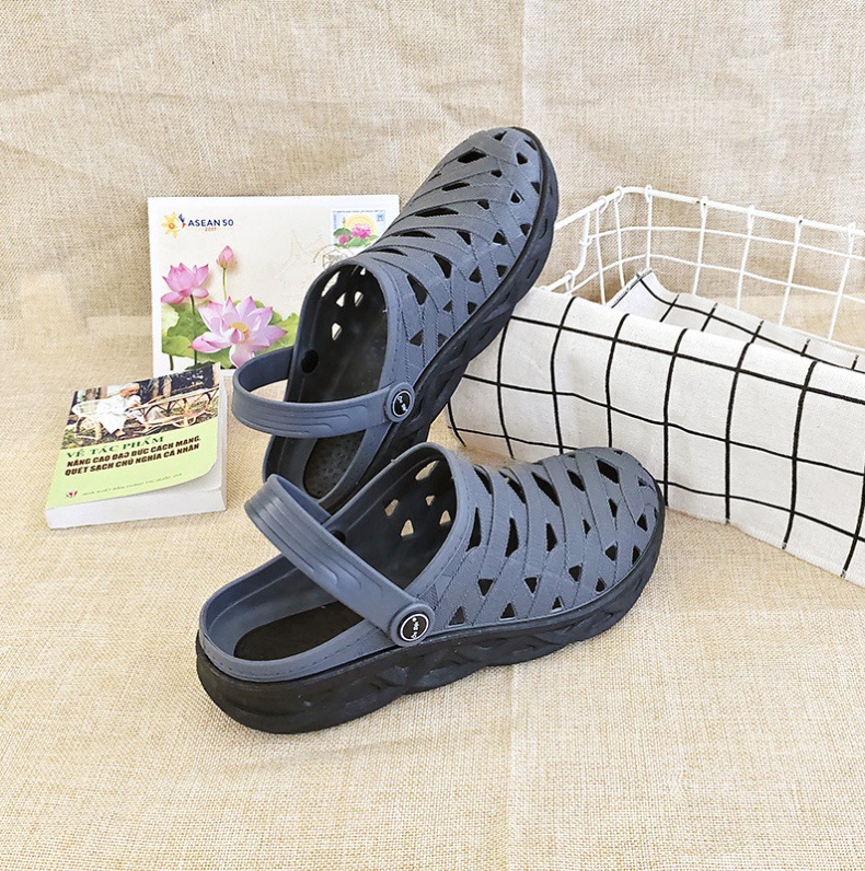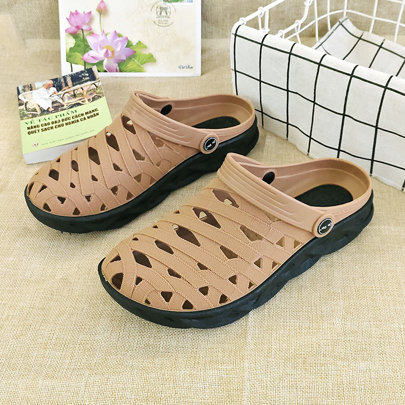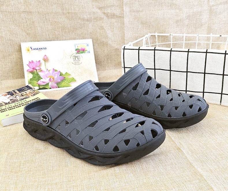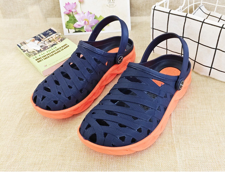 ベトナム風スリッパ、夏用カップル向け定番、つま先が覆われた穴あきサンダル、ビーチサンダル、男女兼用快適ホームシューズ