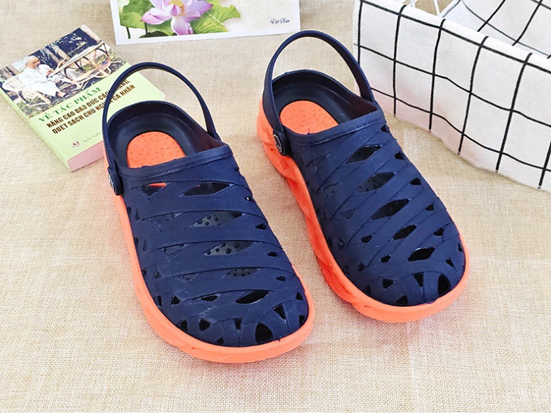 ベトナム風スリッパ、温かいスリッパ、サンダル、夏秋メンズファッション、アウトドア、配色、穴あきシューズ、外履き可能