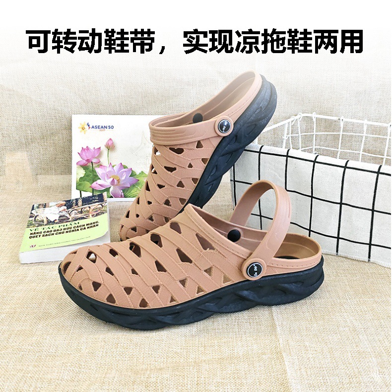 ベトナム風情温突スリッパサンダル夏女性屋外レジャー両用靴新型滑り止め通気シリコン穴靴