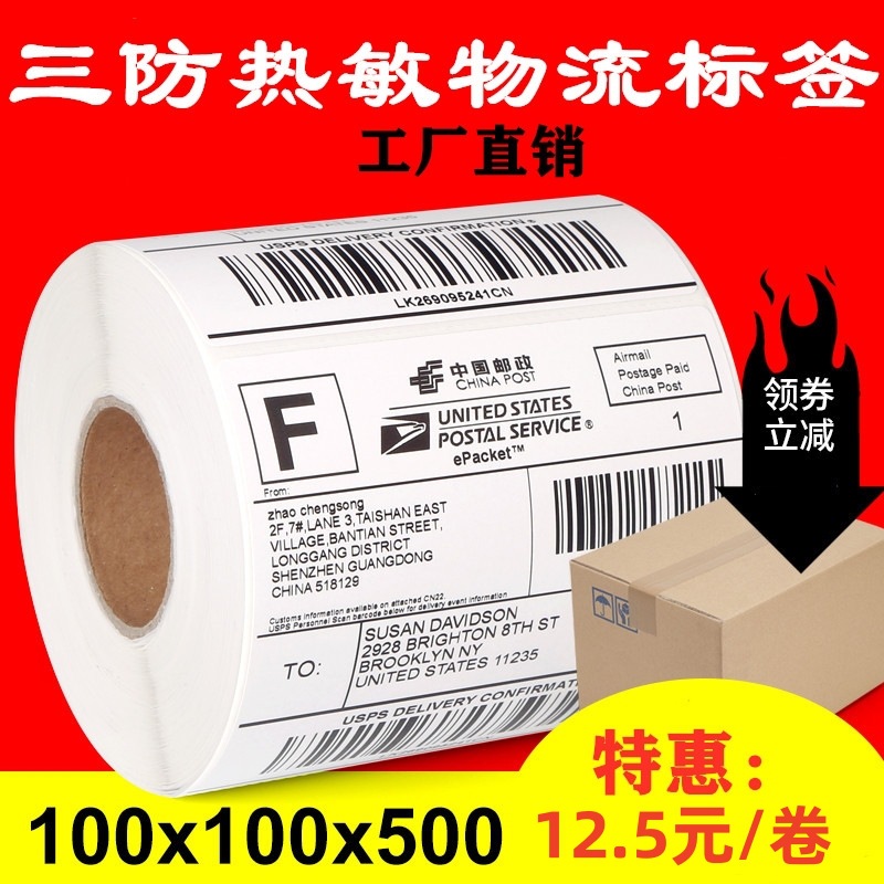 E郵便宝三防感熱ラベル紙100*100*500国際物流宅配便ラベル不乾燥感熱印刷紙