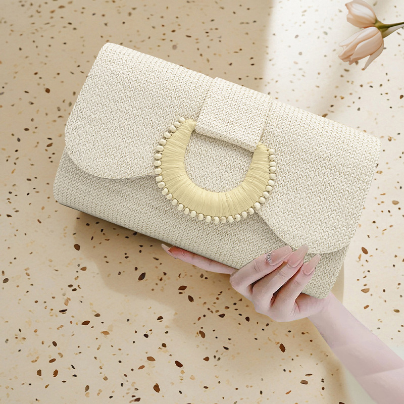 女性のための夏の新しいバッグ 2025 シンプルなファッションスタイルのイブニングバッグわらバッグ織バッグクラッチバッグクロスボディバッグ