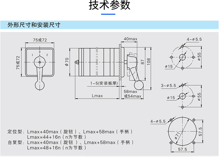LW12-16/4万能変換スイッチ3速4節手動正反転二重電源切替回転