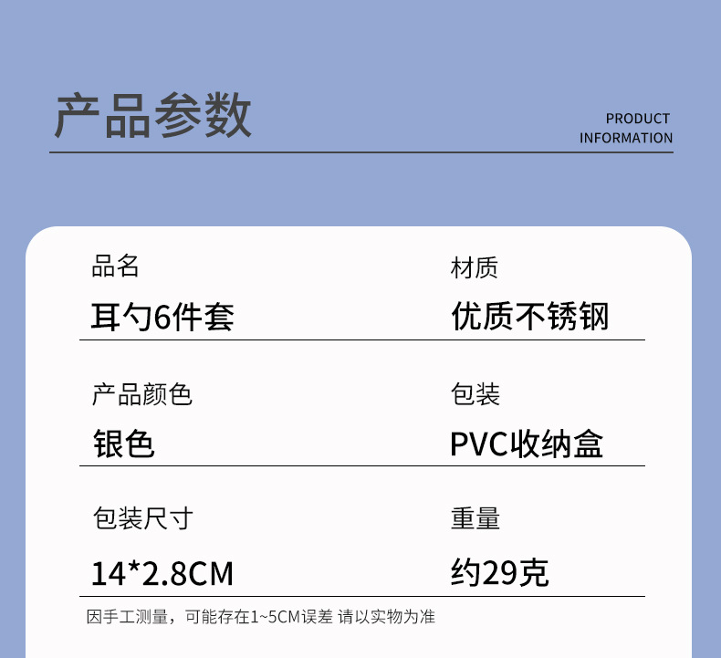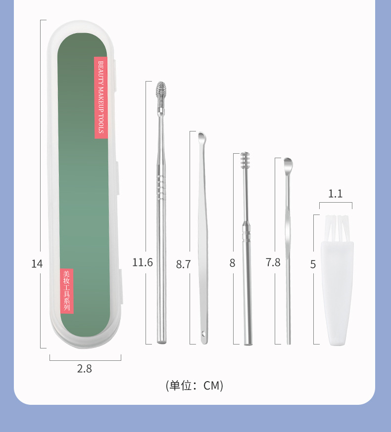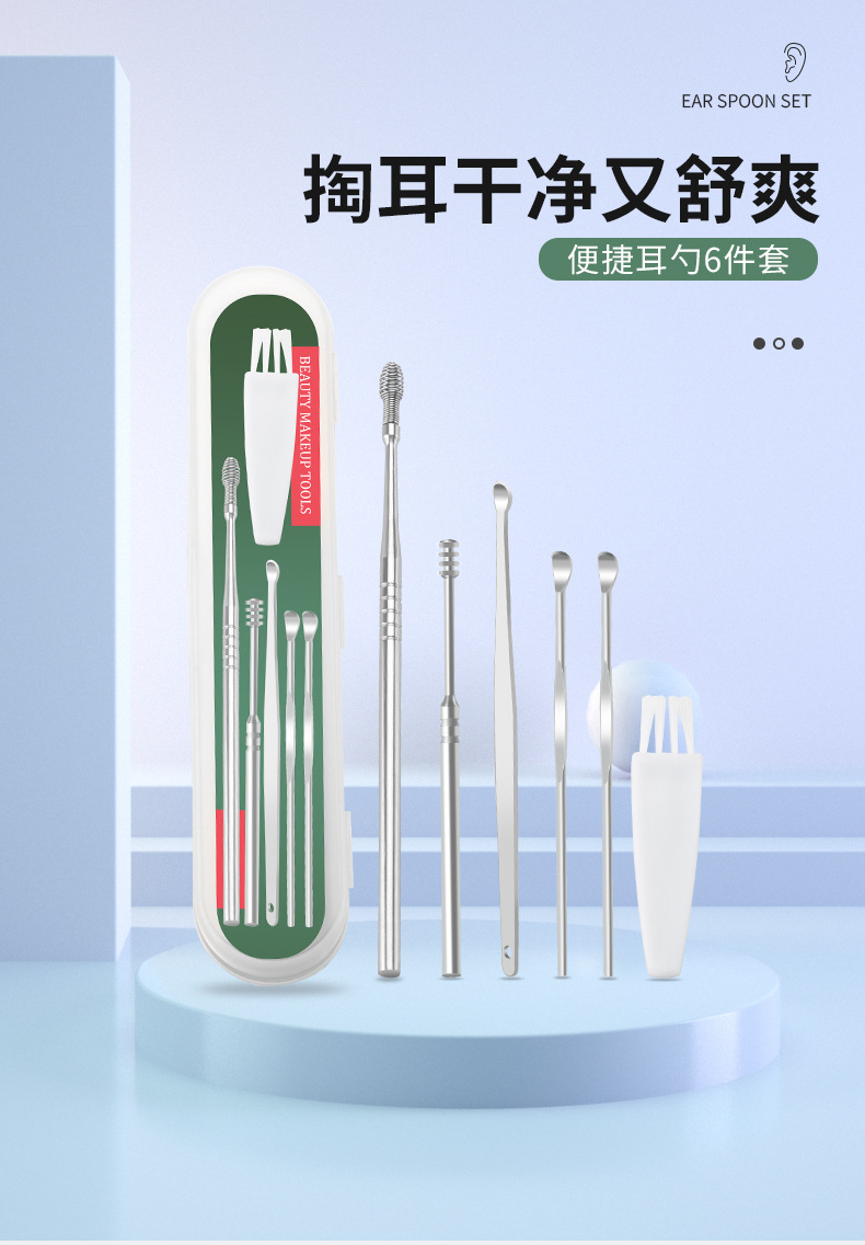 貨物番号 ステンレス製耳かきスプーン6点セット (ゴムケース)
