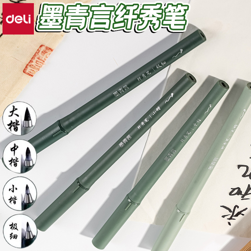 得力墨青言纤秀笔软头笔自带笔锋书法练字可加墨柔绘笔秀丽笔勾线