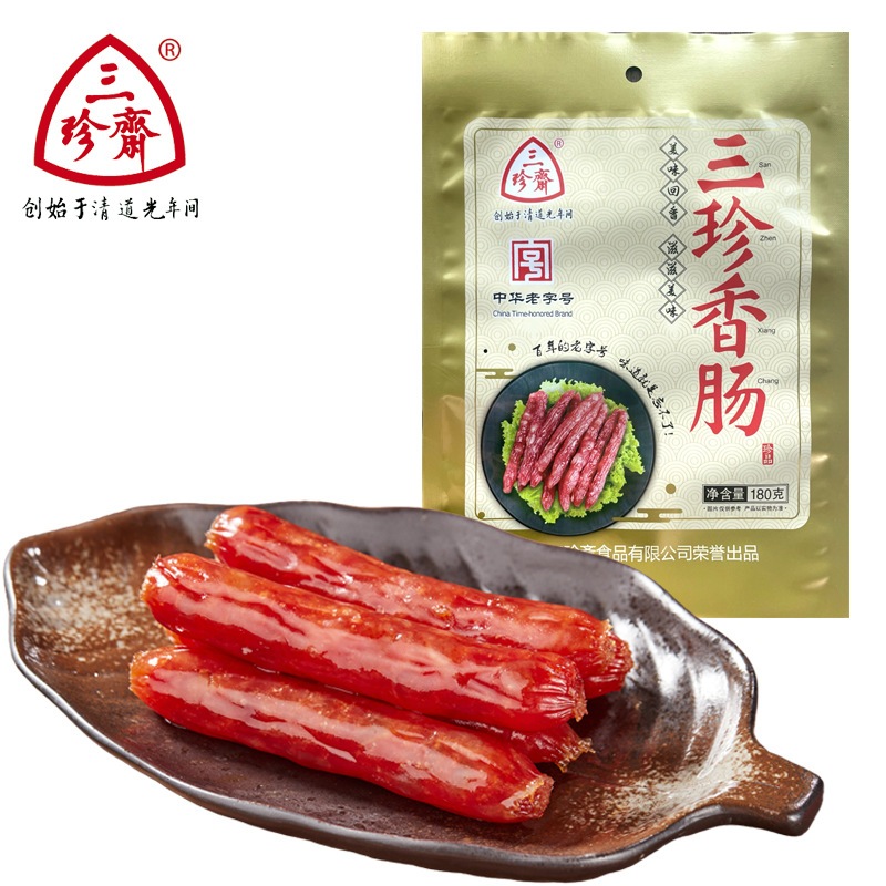 三珍斋广式腊肠180g厂家直销广味猪肉肠真空包装卤味熟食香肠批发