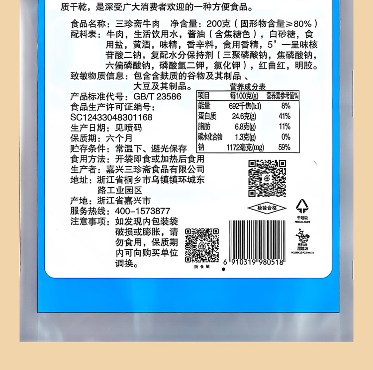 三珍斎牛肉卸売り100gメーカー直販牛肉間食真空味噌汁牛肉インスタント食品冷食ハロゲン味熟食