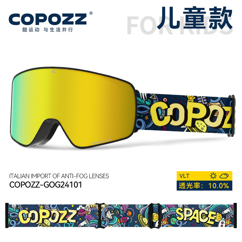 COPOZZ子供スキー鏡二重防霧磁気吸引柱面可カード近視登山防風スキー保護メガネ