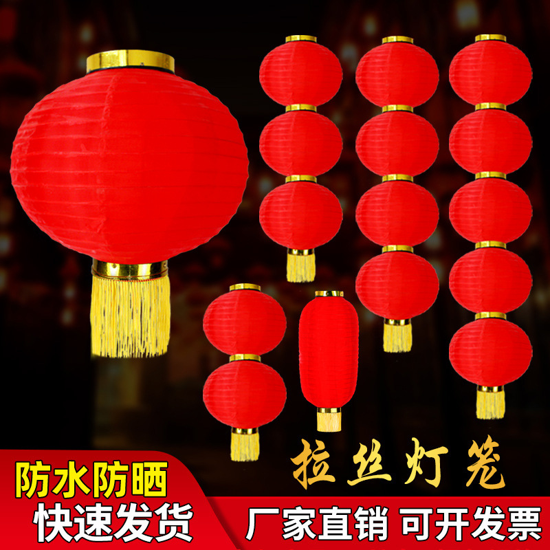 大紅円提灯連続提灯屋外防水広告提灯折り畳みランプ新年結婚伸線提灯卸売り