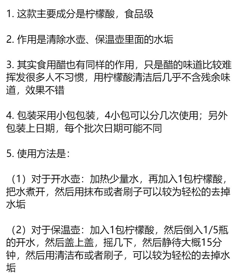 7581.クエン酸洗浄剤水垢除去剤洗浄剤家庭用電気ケトル水垢除去