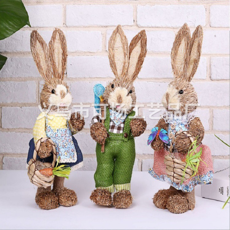 イースターのウサギのシミュレーションの蒲草のウサギの置物の家庭の装飾のデパートの装飾の園芸の装飾のウサギの卸売り