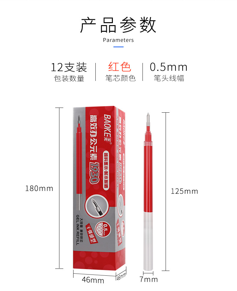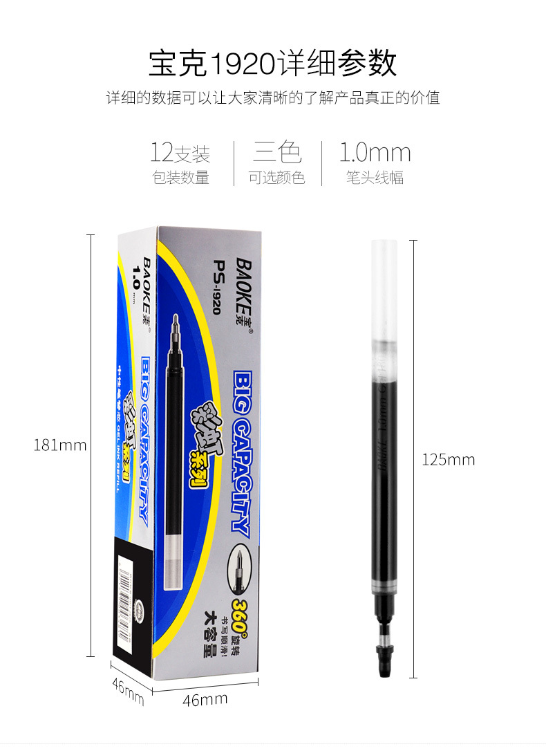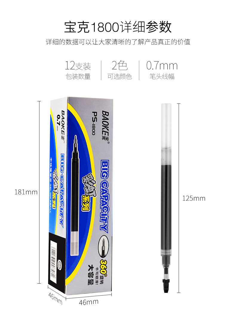 Baoke 1800 レインボーシリーズ大容量リフィル 0.5/0.7/1.0 ミリメートルゲルペン署名ペンリフィル卸売