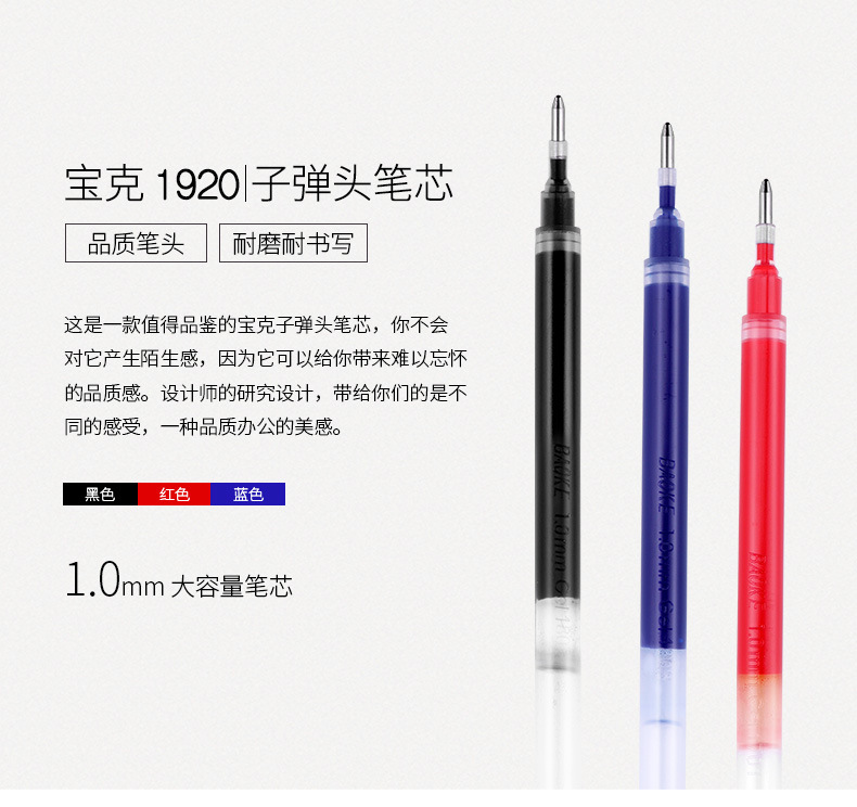 宝克中性筆芯試験大容量弾丸青黒墨青0.5/0.7/1.0mm黒赤青