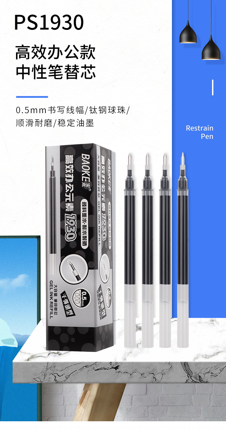 宝克中性の芯の超大容量のサインの芯のPS1930中性の芯の黒色の水の芯の卸売り