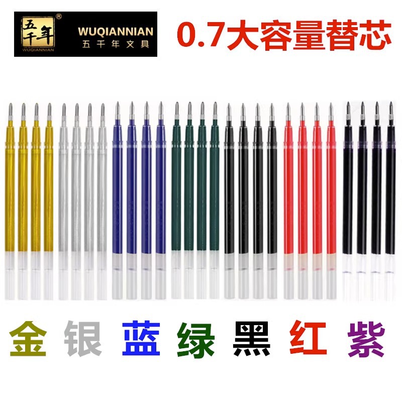 五千年加太ペン芯中性ペン芯緑紫青0.7mm1.0mm黒赤大容量弾丸ヘッド
