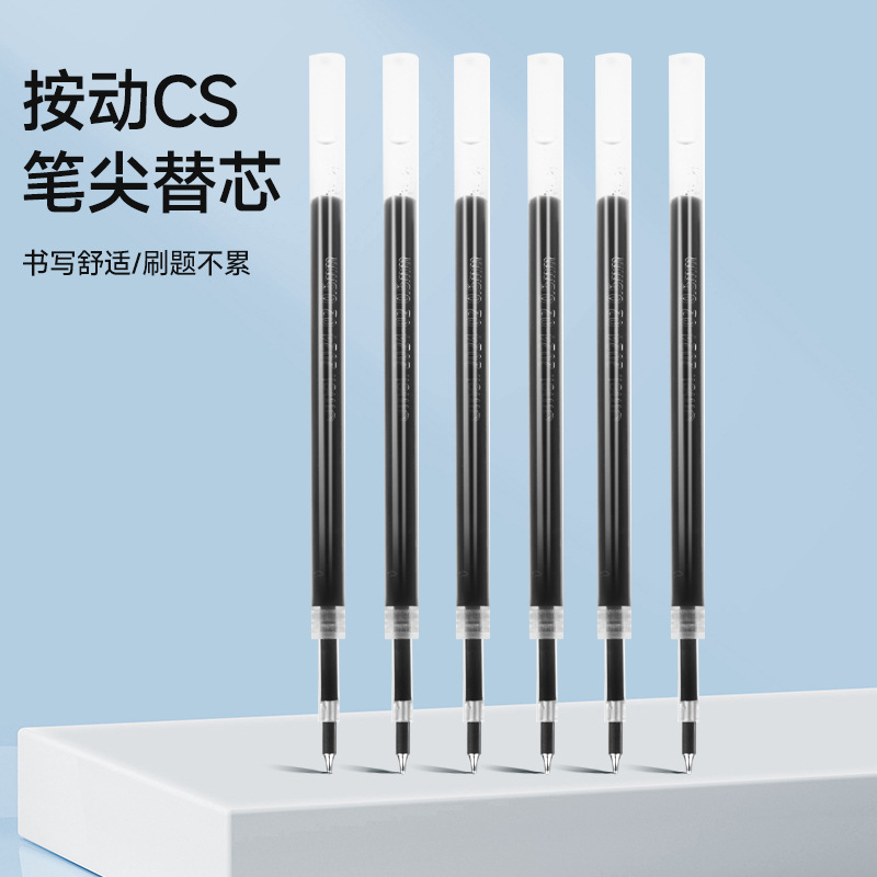 刷题笔芯按动替换芯CS头速干中性笔黑色0.5葫芦头替换签字笔替芯