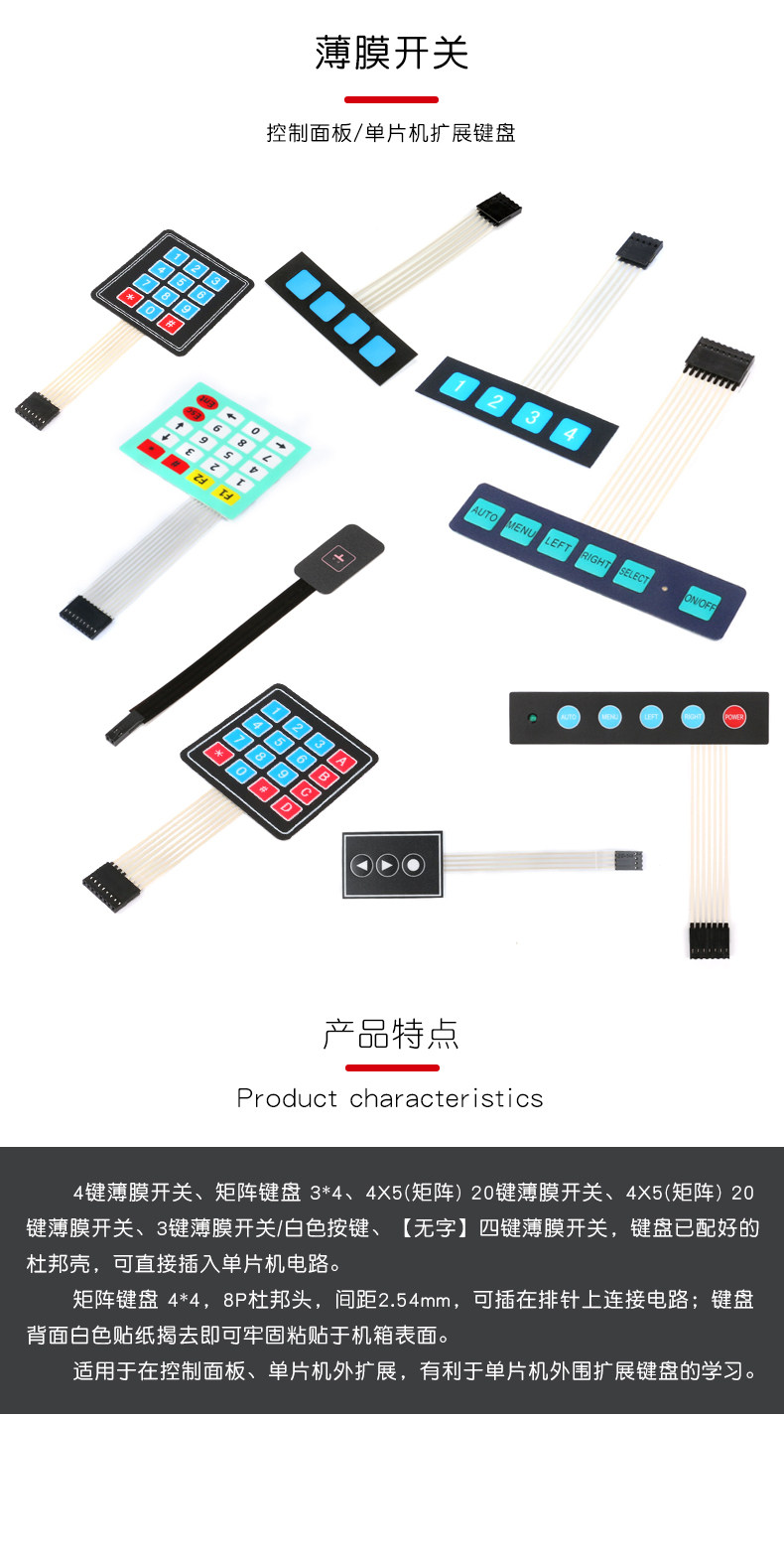 1/3/4/5/3*4/4*4/4*5キーマトリックス薄膜ボタンスイッチコントロールパネルワンチップマイクロコンピュータ拡張キーボード