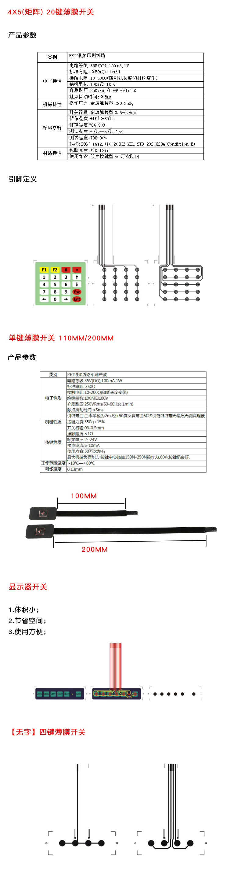 仕様 シングルボタンフィルムスイッチ110mm,シングルボタンフィルムスイッチ200mm,3ボタンフィルムスイッチ/白いボタン,【字なし】四ボタンフィルムスイッチ,4ボタンフィルムスイッチ,3*4マトリックスキーボード,4*4マトリックスキーボード,4*5マトリックスキーボード,5キー-表示スイッチ,6キーランプディスプレイスイッチ