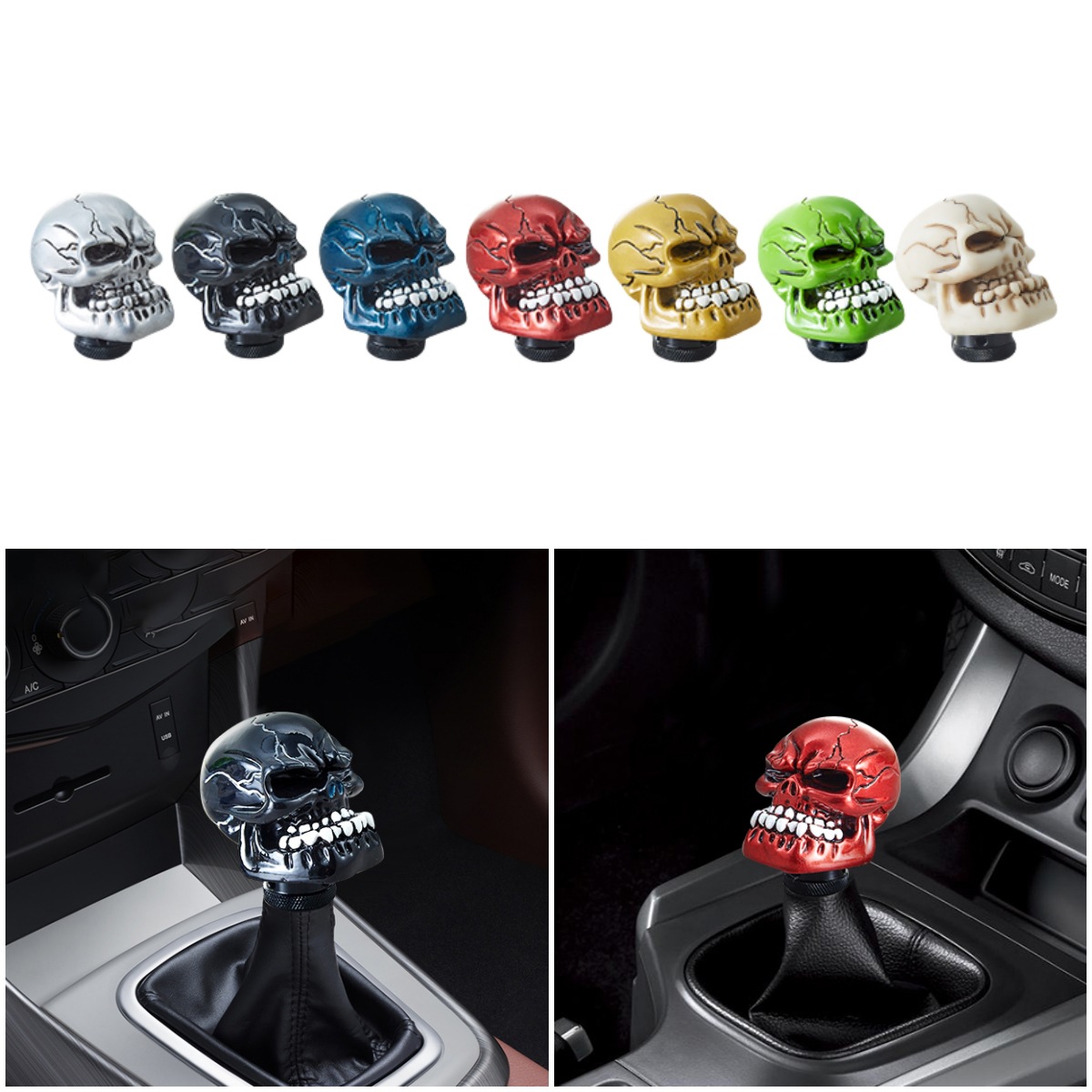 車改造用ギアシフトヘッド、個性的な鬼の頭蓋骨デザイン、樹脂製シフトレバー、汎用タイプ