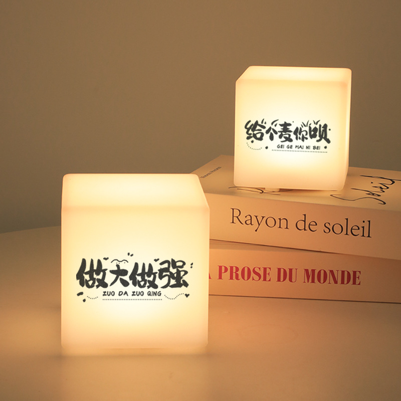 スクエアナイトライト雰囲気充電子供の睡眠寝室ベッドサイド目の保護デスクトップテーブルランプ印刷可能なロゴテキスト