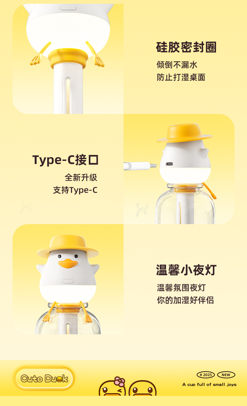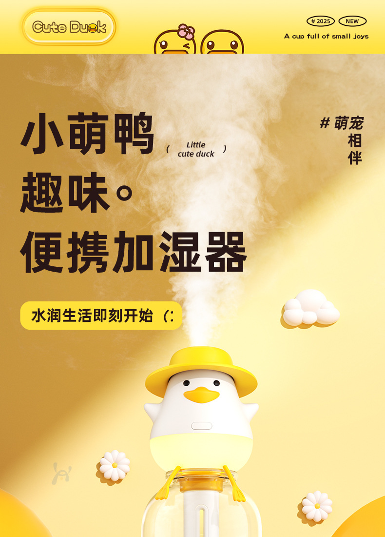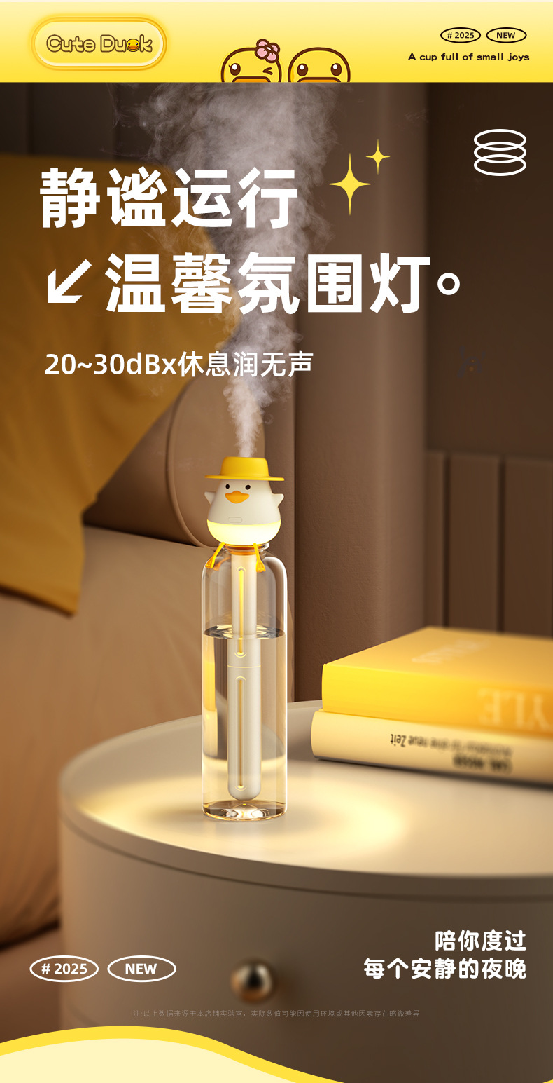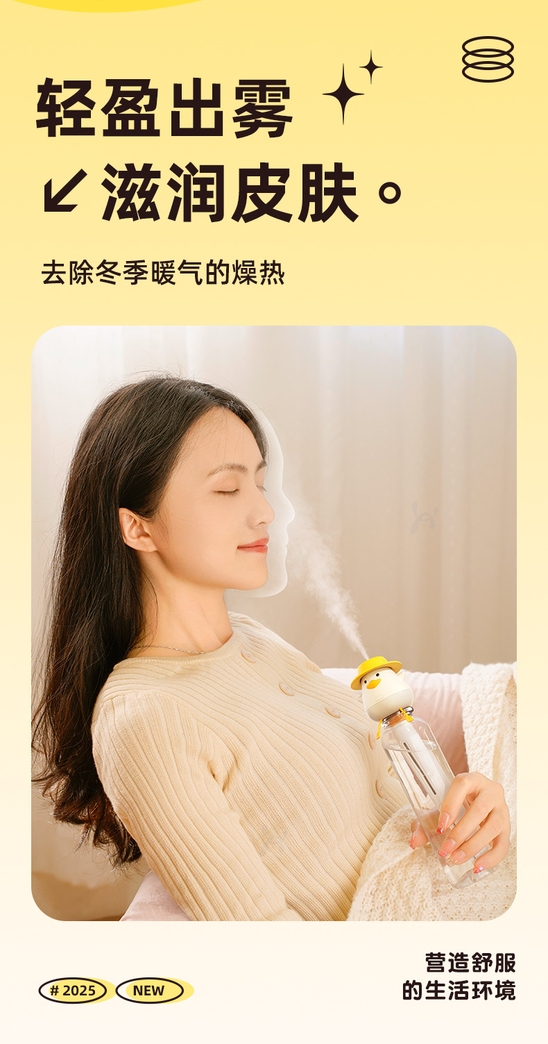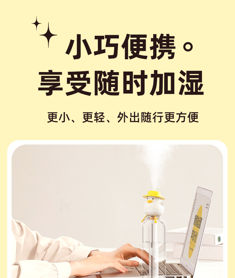 小萌鸭加湿器迷你矿泉水瓶加湿器便携式usb 车载喷雾家用桌面补水