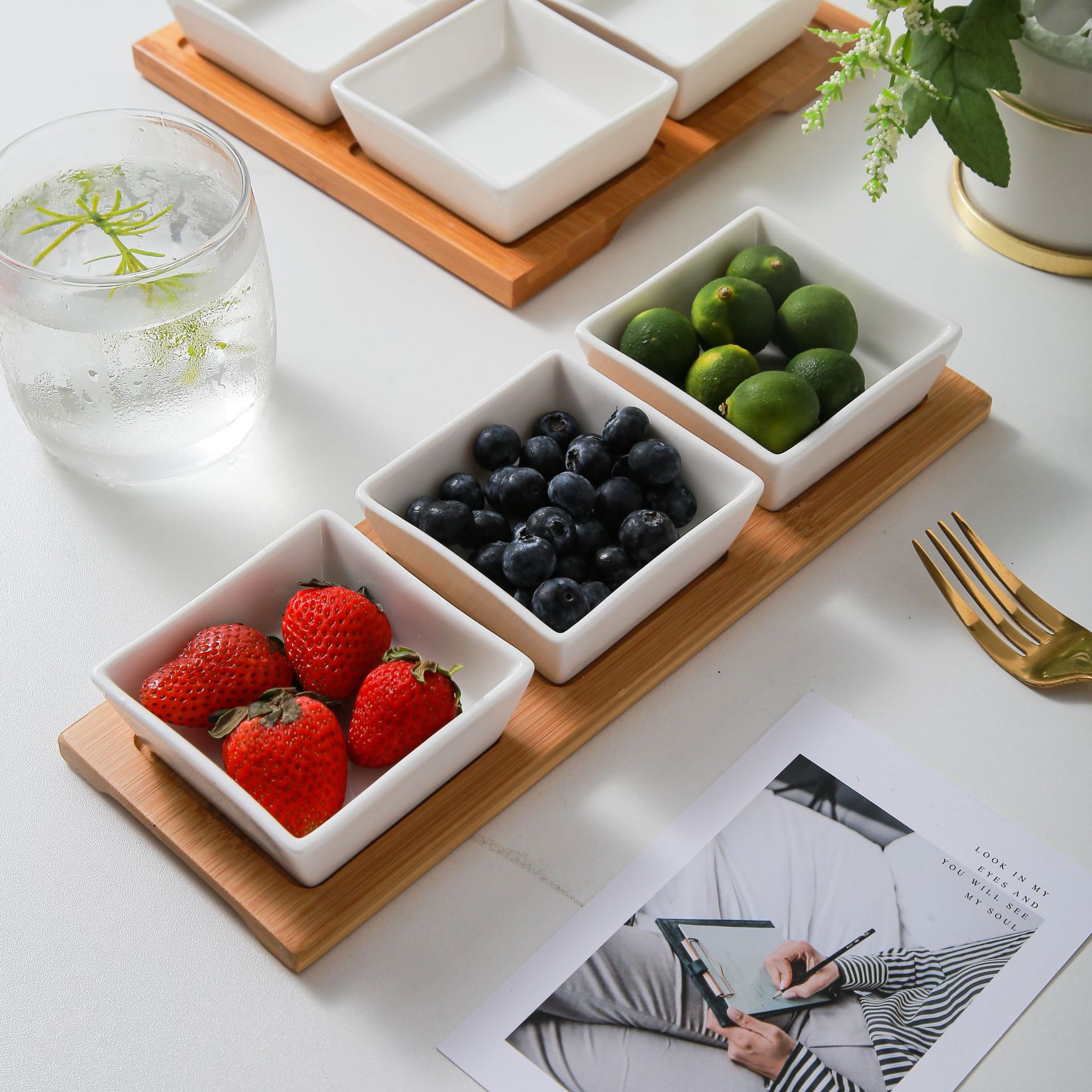 日本式多分格零食盤陶磁器竹木乾果盤小皿ソース皿客間果物茶点軽食皿