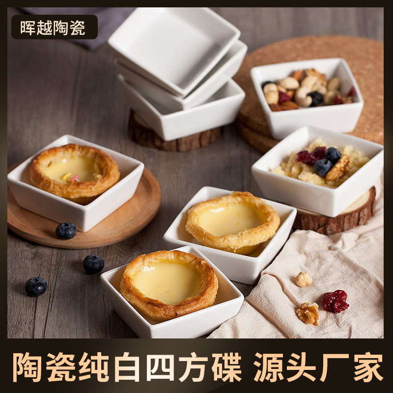 和風クリエイティブ純白陶器四角皿、デザート小鉢、鍋用醤油皿、調味料皿、配膳皿、卸売食器