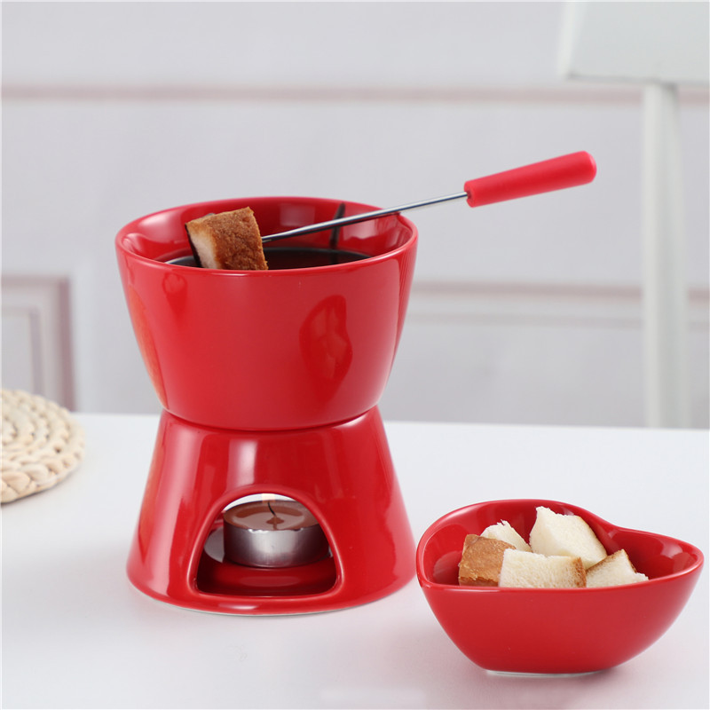 レッドチョコレートホットポット家庭用アイスクリーム鍋セラミックチョコレート溶解炉チーズポットキャンドルストーブ