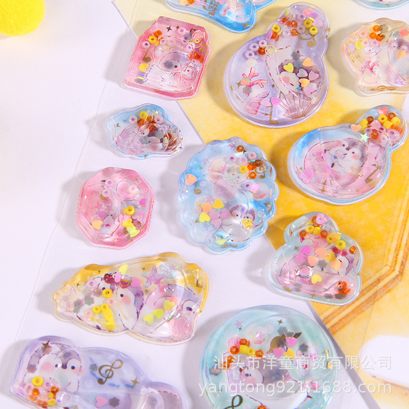 YT-DN卡通儿童3D立体注水灌油不干胶装饰手帐幼儿园J奖励摇摇贴纸