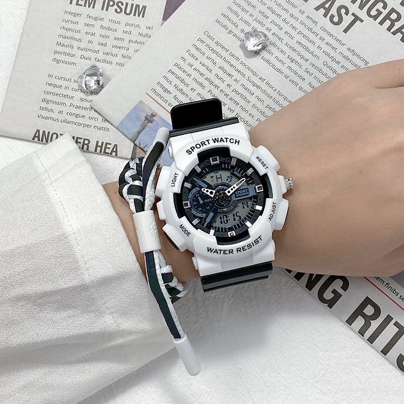 腕時計の男女の学生の電子時計のカップルの運動のファッションの防水の夜光の目覚まし時計の双顕の子供の時計