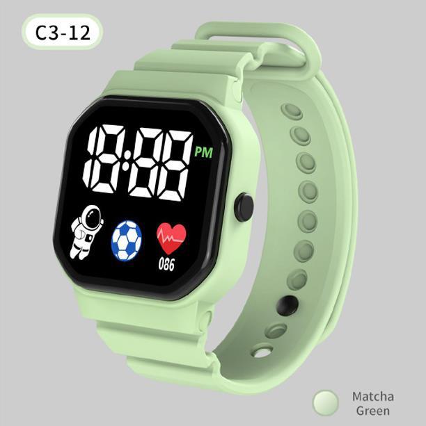 学生・子供向けカジュアルLED電子腕時計 C3-12 宇宙飛行士風スクエア電子腕時計
