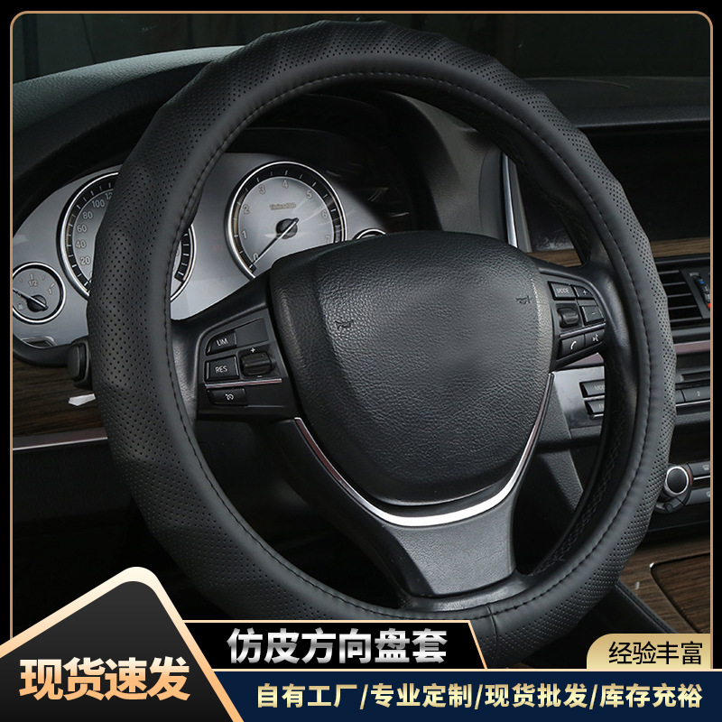 シンプルな革の車のハンドルカバーの穴を開けて通気します。