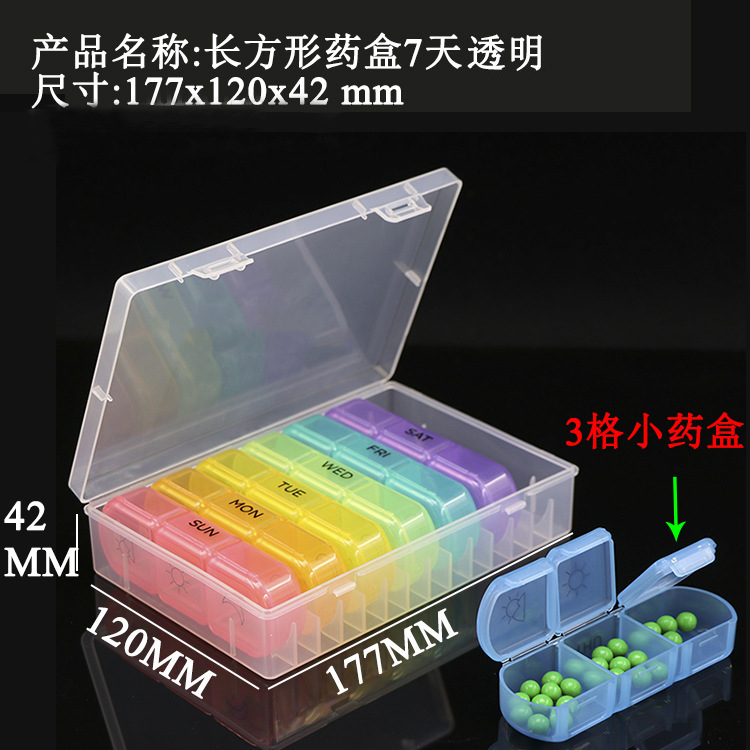クロスボーダーXLカラフル一日三回朝晩7日便利虹角型便利ピルケース4格6格8格薬ケース