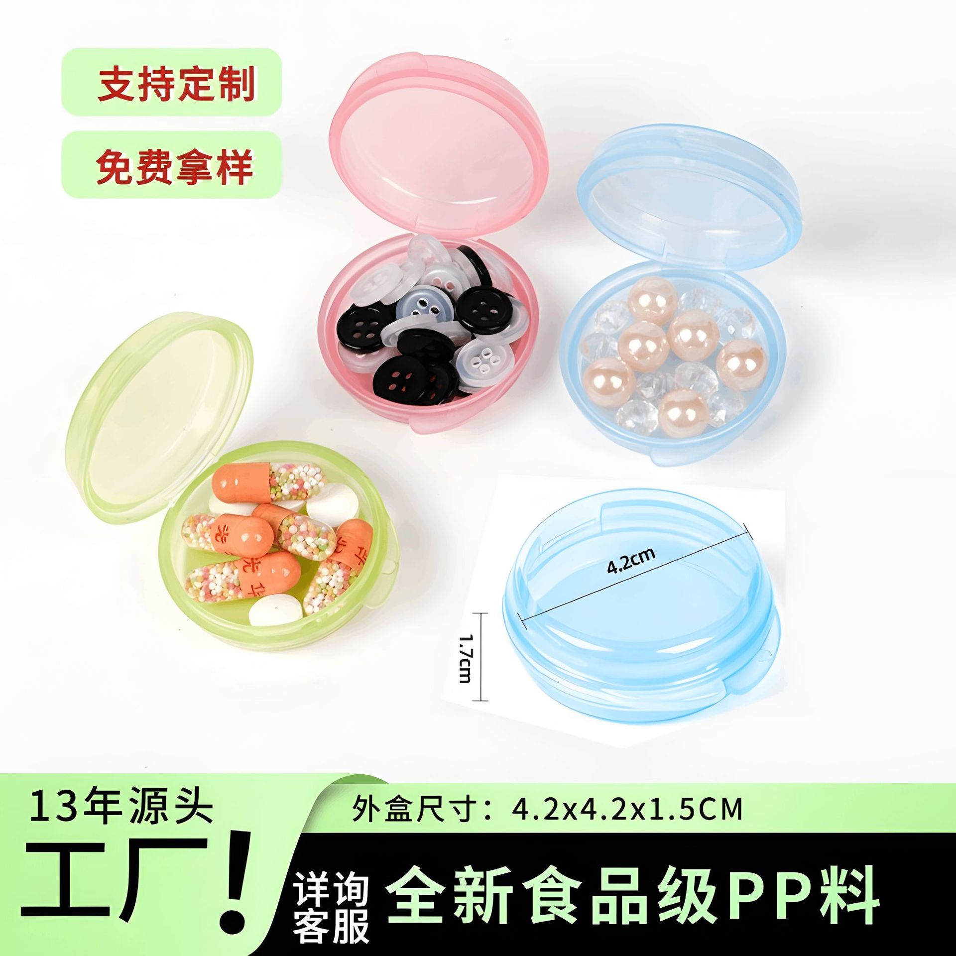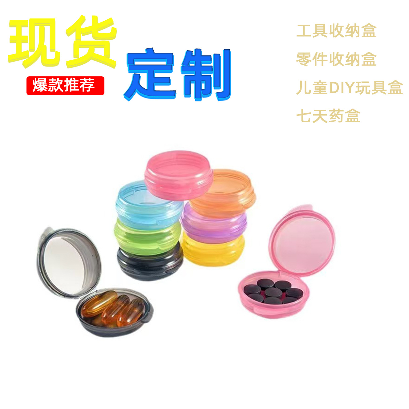携帯薬箱ミニ密封小箱分注収納箱透明プラスチック円箱携帯食品級収納箱