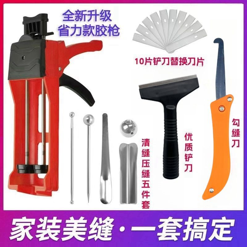 美缝工具套装全套瓷砖地砖清缝填缝剂铲刀胶枪箱手动施工工厂跨境
