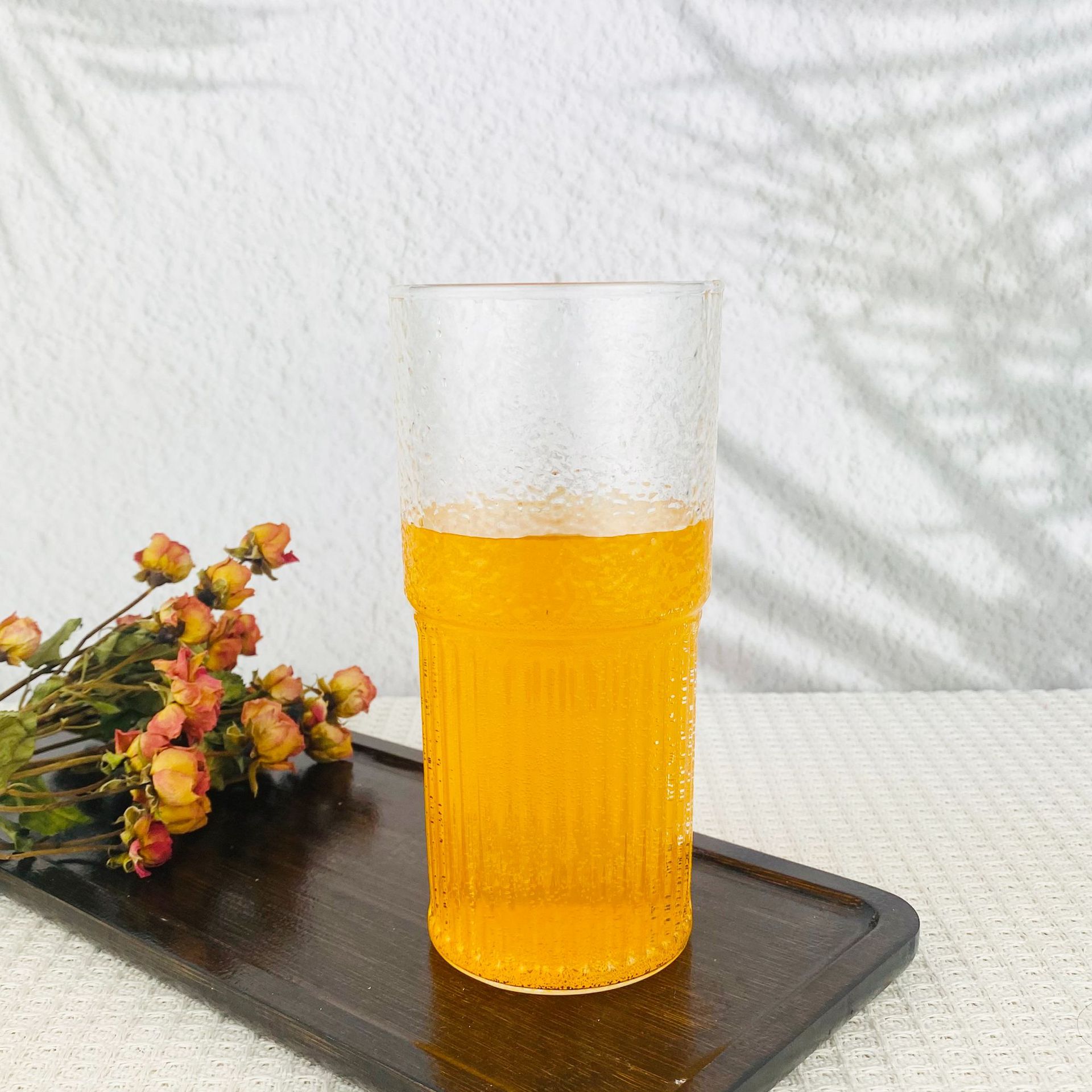 高硼珪酸耐熱ガラス製茶器、かぼちゃ型、高級感、オフィスでのおもてなしに最適、ストライプガラス茶器