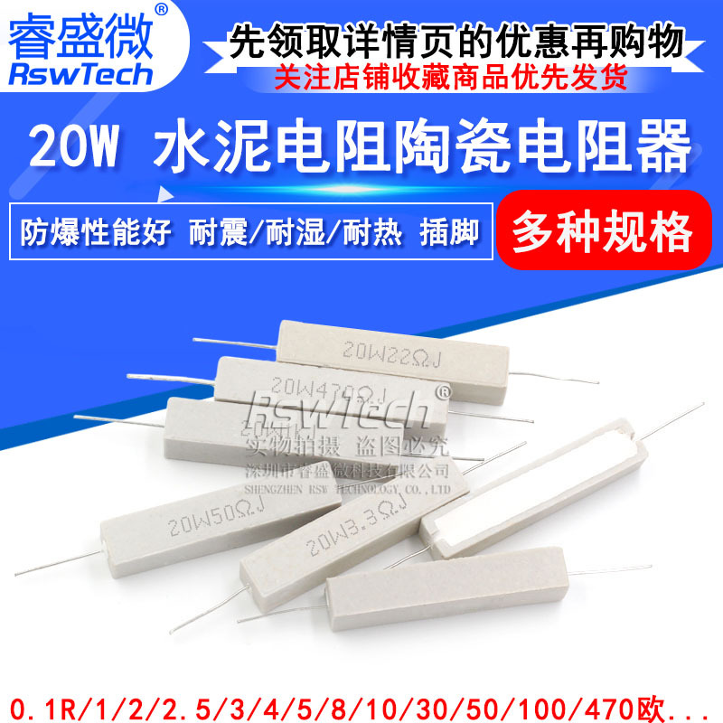 20wセメント抵抗1r/2/2.2/2.5/4/5/10/33/200ユーロ470ユーロセラミック抵抗器
